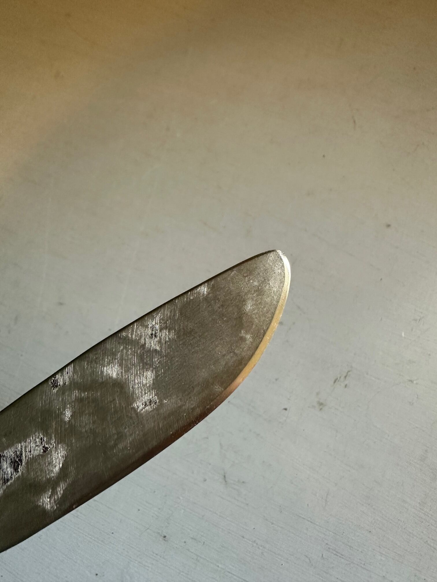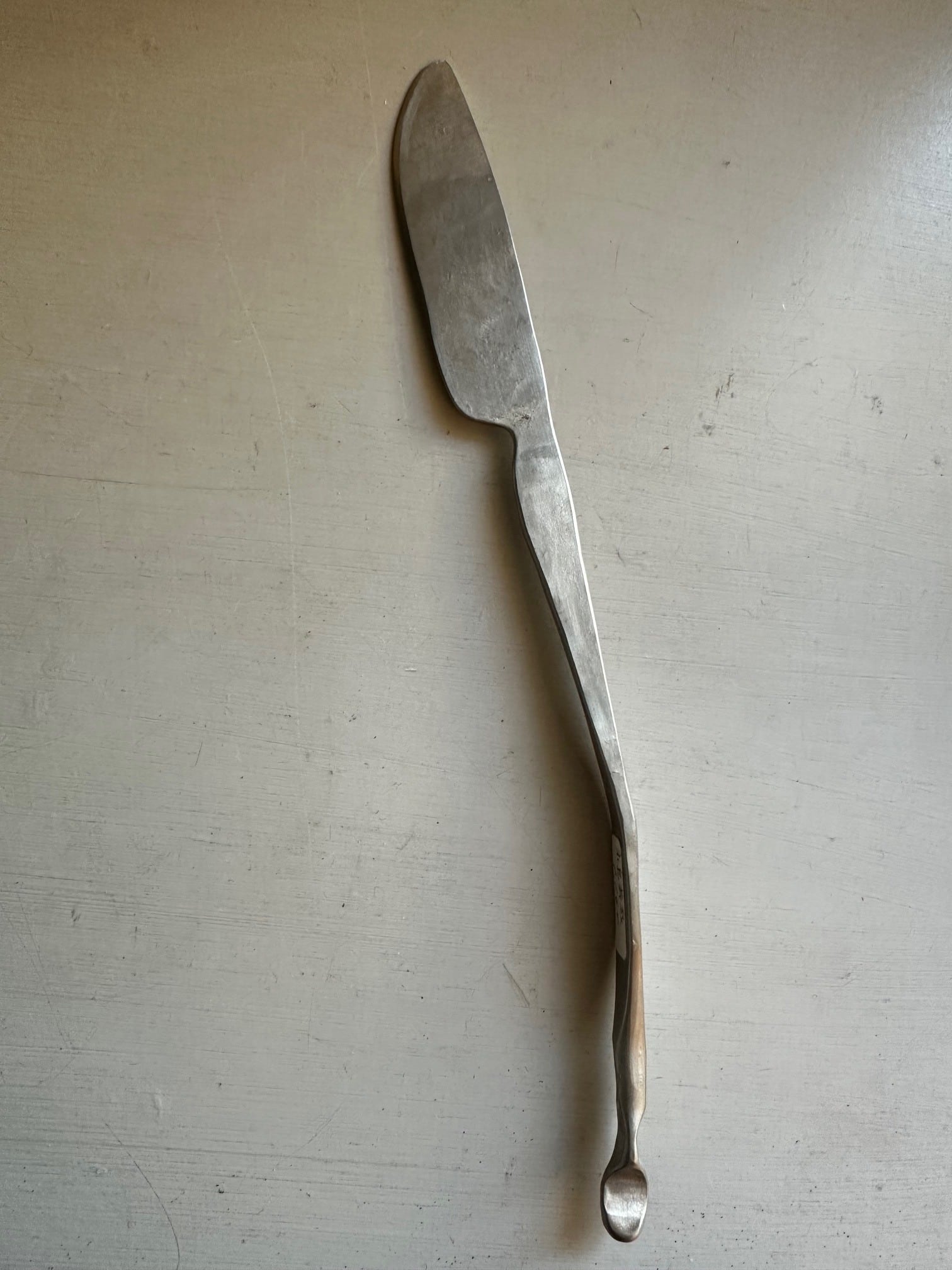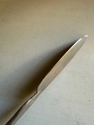 長さ21㎝ 幅2㎝ ステンレス製 zemmaiシリーズと同じ形で地金の色を生かしたユーズド感のあるマット仕上げになっています 魚や野菜料理に向いています テーブルで切りわける時など使い込んだボードなどと合わせても素敵です