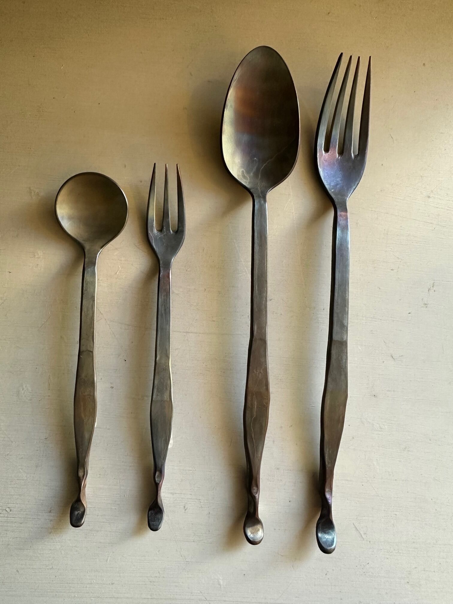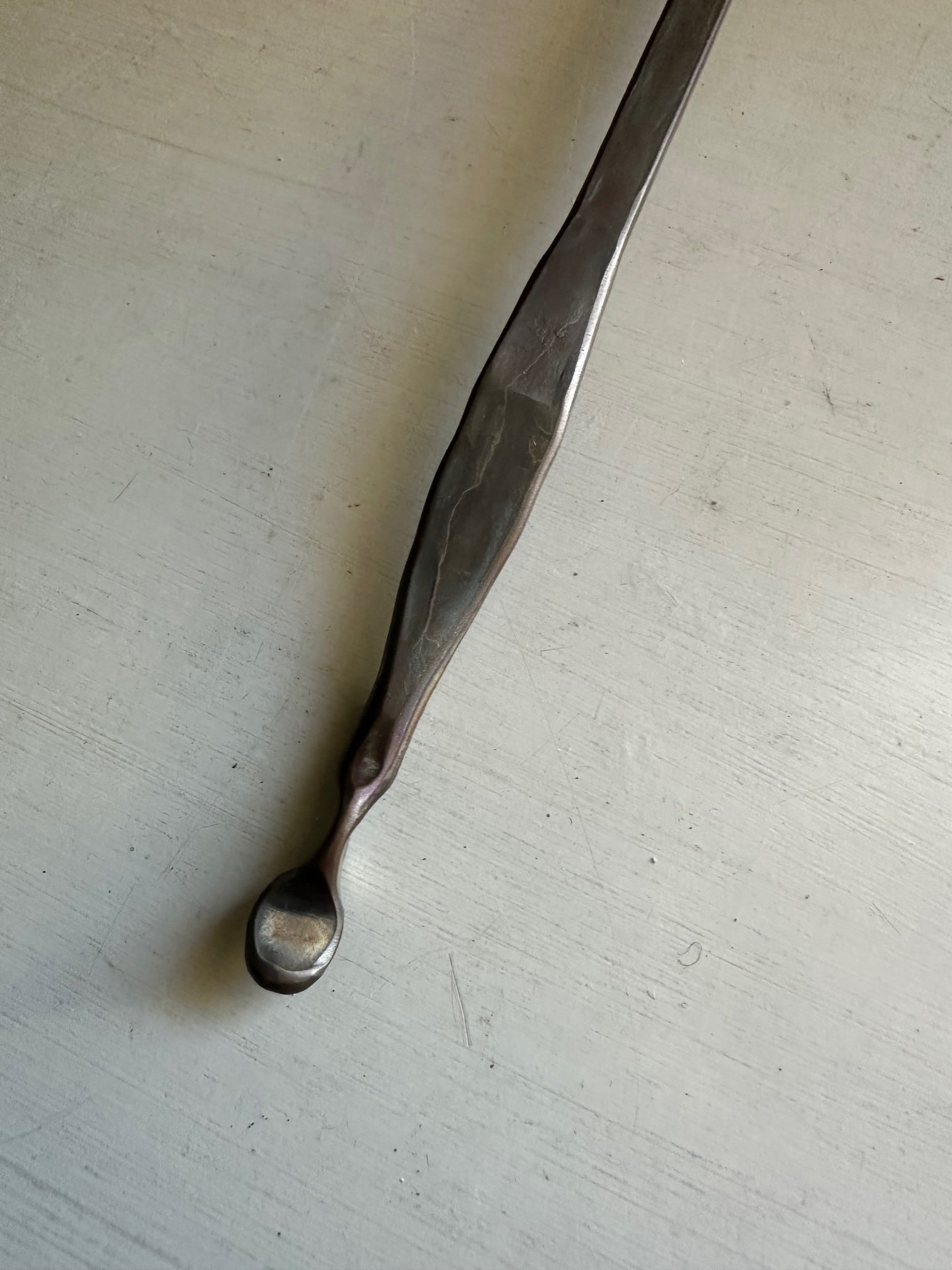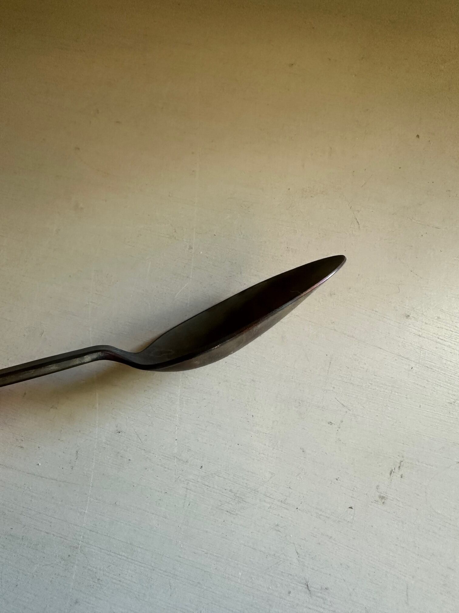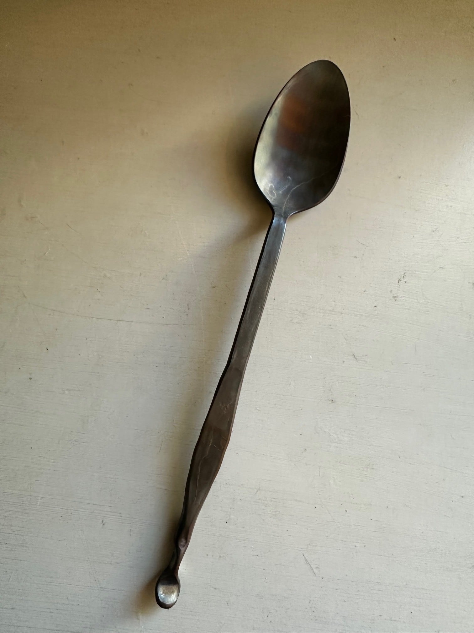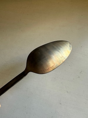長さ21.3㎝ 幅3.5㎝ ステンレス製 zemmaiシリーズのディナースプーンです 表面に焼きを入れて錆びたような表情を出していますが、使用には全く問題ありません すくう部分が薄めにデザインされていて口抜けの良さは抜群です